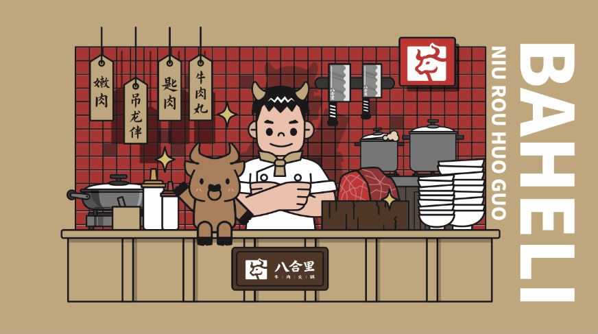 “这只神秘的牛牛小精灵,跟阿平是很好的拍档。”——品牌IP“小八”身着厨师服装,整体造型卡通可爱,一亮相便吸睛无数。这也是八合里首次将品牌IP从一个卡通图形变成为一个有身份有个性的“生命体”——不仅将品牌理念渗透到整个业务链条中,衍生出专属表情包文化、传递品牌个性主张,让人眼前一亮记忆深刻,更是成功地进一步融入年轻人族群,所建立的品牌认同感就像一股无形的力量拉近了与粉丝“八粉”的距离,点燃品牌年轻化新势能。