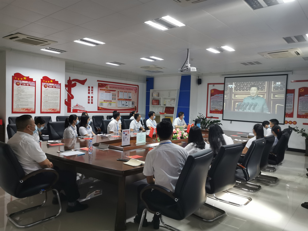 7月1日早晨7:30,梅州伊利党支部24名党员早早地在党群之家会议室整齐就坐,等待观看“庆祝中国共产党成立100周年大会”直播,伴随着习近平总书记的讲话,会场不时响起阵阵掌声。“聆听习近平总书记的重要讲话,回顾我们党百年波澜壮阔的光辉历史,令人无比振奋。今天的我们身处两个百年交汇的历史时刻,能有幸投身中华民族伟大复兴的历史伟业,是无上荣光,也是重大责任!”党员张刚激动地说。