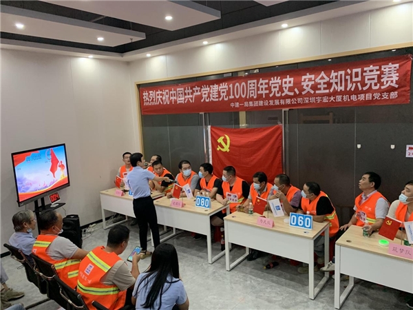 读特客户端·深圳新闻网2021年7月30日讯 同心筑梦,百年芳华,为扎实推进党史学习教育走深走实,创新党史知识学习方法,浓厚学习氛围,增强学习兴趣,近日,中建一局集团建设发展有限公司深圳宇宏大厦机电项目党支部举办以庆祝中国共产党建党100周年“学党史、守初心、保安全、促发展”为主题的党史、安全知识竞赛。此次活动参赛代表队是由项目广大工友组成“忠党队”、“爱国队”、“为民队”、“筑梦队”,共计50余人参加了本次活动。