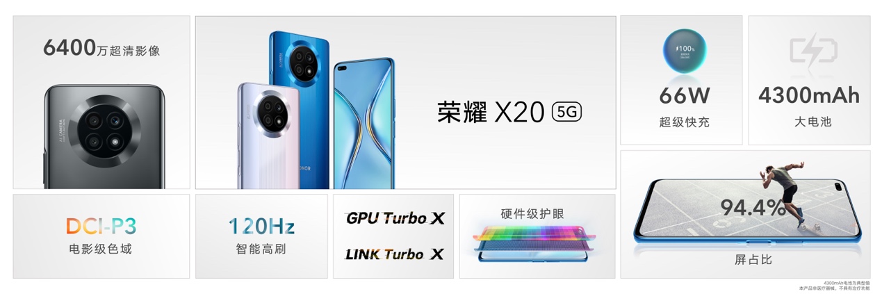 荣耀X20,120Hz超窄边全面屏+66W超级快充