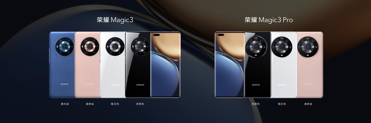 “曙光蓝”代表成熟、冷静和睿智,蕴藏着韬光养晦后再次出发的实力和勇气;“晨晖金”红橙色调重现黄金时刻的温柔光线,欲为世界注入温暖和力量。除此之外,荣耀 Magic3系列玻璃后壳版则采用了亮黑、釉白两款色。荣耀 Magic3系列的美学面面俱到,万千手机中,独具一格的非凡设计,一眼可辨。