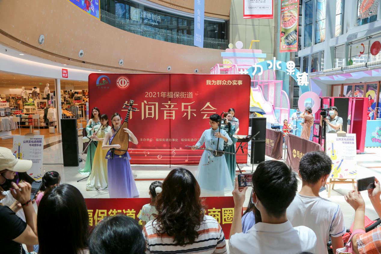 读特客户端·深圳新闻网2021年8月20日讯 (记者 蔡凯伊)8月20日,2021年福保街道午间音乐会在马成时代广场举办,现场独奏与合奏齐鸣,二胡、琵琶、笛子、箫、葫芦丝、扬琴、古筝等乐器倾情奏响,为辖区职工和前来商场购物的群众带来轻松美妙的音乐享受。