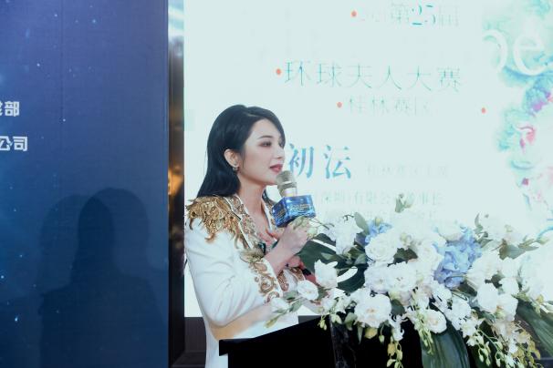 李初沄在开幕致辞中表示,为进一步推动杰出女企业家展示新时代女性风采,助力新时期家庭文化建设,扎实做好新发展阶段粤桂协作合作,2021年第25届环球夫人大赛桂林赛区,再次创新“文化+旅游+赛事”相融合的模式,承袭将“舞台融入山水,让美丽依山为傍,让绰约如水起舞,向世界展示桂林和中国民族文化”的精髓,联结粤桂、推动深圳与桂林等多地文旅协同发展,促进粤港澳大湾区及两广杰出女性交流,引领“她”文化踏浪前行。
