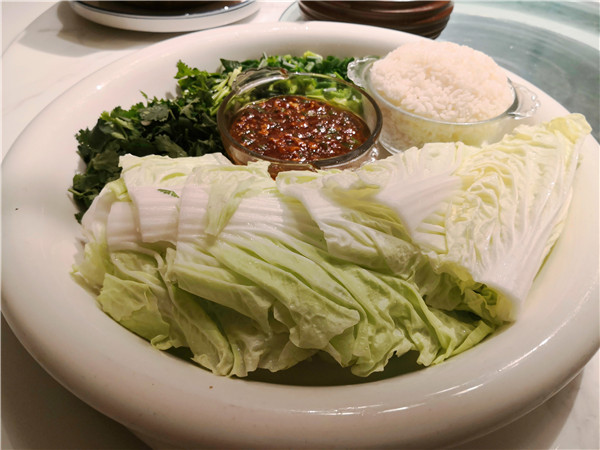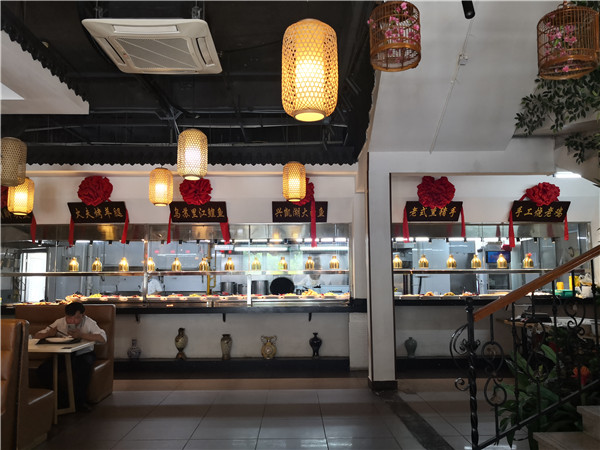 尤其扎眼的,正对大门的明厨亮灶上的几块牌匾,一下子就勾起人的食欲:老式熏猪手、手工烧老鸡、乌苏里江鳇鱼、兴凯湖大白鱼、查干湖胖头鱼、火夫灶羊腿。这些都是地道的东北味啊!据介绍,老板汤长明是黑龙江“龙菜”系传承领军人物,祖孙四代传承东北菜厨艺,现在关东大院餐饮集团董事长。当然,许多大家耳熟能详的大众菜也应有尽有,如:杀猪菜、小鸡炖蘑菇、得莫利炖鱼、大鹅炖宽粉、黑皮肘子、酸菜粉、地三鲜、东北卤水点豆腐、金汤辽参、黄鱼烧土豆、红烧肉黄金勾......看得人口水直冒。加之,整个门店的布局也十分特别,一楼明厨亮灶之外,主要是大堂散座,周边还有不少的书籍、酒架;二楼主要是包间,简洁明亮。可以说,在此可以感受到一股浓浓的关东风情。