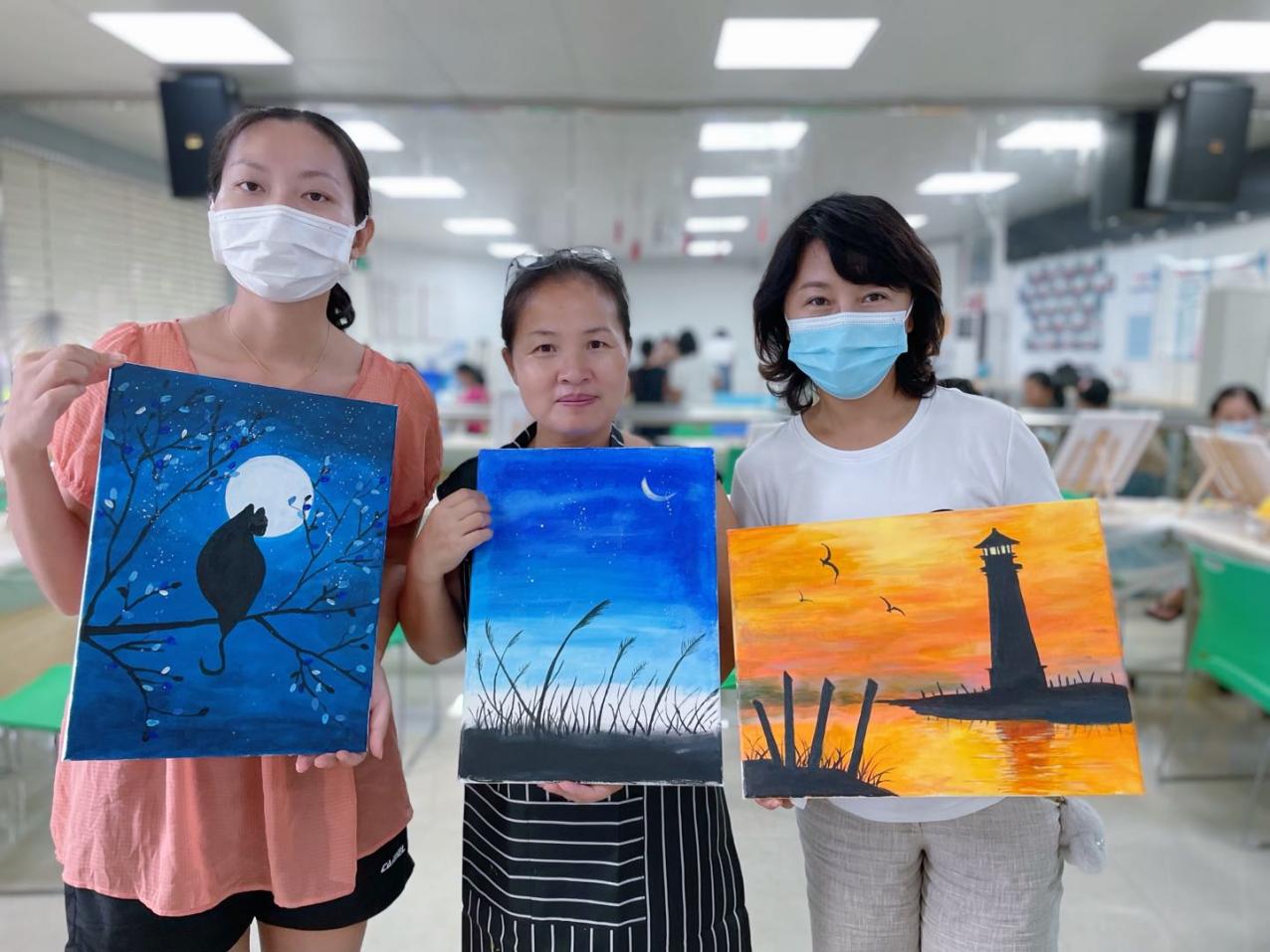 温馨的环境,融洽的气氛,专业的老师,友好的同伴,妈妈们度过了一个个美好的下午。尽管妈妈们都是零基础,但全情投入的专注,不仅释放了压力,更是打开了一扇通往油画艺术的小窗。爱自己,爱生活,才能更好地爱家人,本次油画班持续开展约两个多月,妈妈们更好地享受属于自己的油画时间,学有所获。