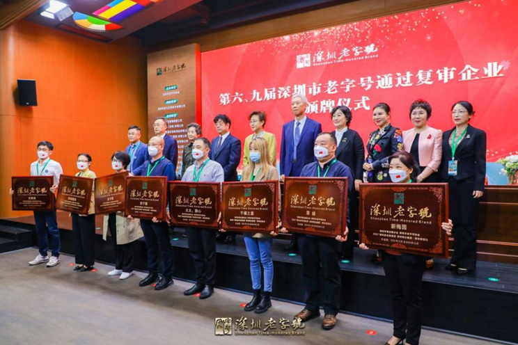 会上,还举行了第六、九届深圳市老字号复审颁牌仪式。受疫情影响,2021年复审工作首次采用线上评审方式,分为线上和线下两种形式开展。健康元、百果园、吉祥斋、佳宁娜、雅兰、唐宫等28家老字号企业参与线上复审,野生动物园、千禧之星、光明乳鸽、深装总、东方逸尚等12家企业通过线下走访的形式进行,专家评委根据企业的陈述汇报与复审材料相结合进行综合评定。最终,40家深圳老字号企业顺利通过复审。