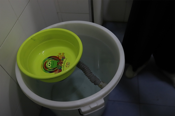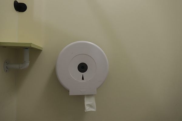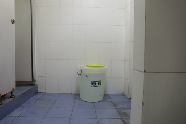 厕内有纸巾盒但是闲置,冲水装置破损。