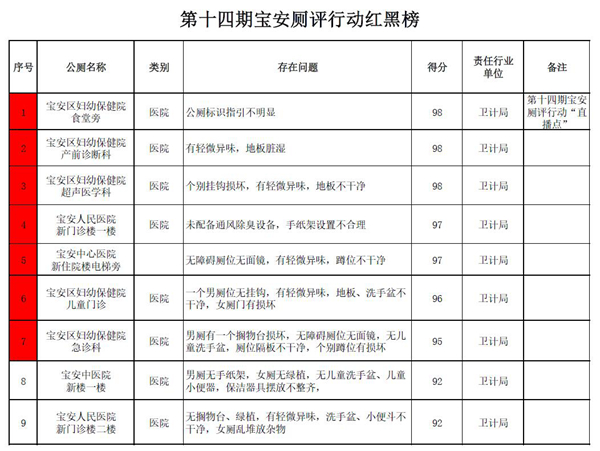 突查新安西乡医院公厕,发布医疗卫生行业公厕“红黑榜”