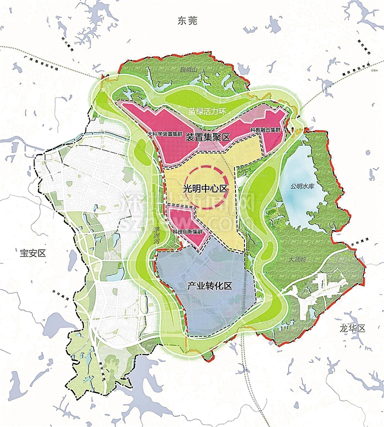 深圳新闻网4月11日讯 科技兴则民族兴,科技强则国家强。2016年5月召开的全国科技创新大会上强调,实现“两个一百年”奋斗目标,实现中华民族伟大复兴的中国梦,必须坚持走中国特色自主创新道路,面向世界科技前沿、面向经济主战场、面向国家重大需求,加快各领域科技创新,掌握全球科技竞争先机。 深圳市坚持把创新作为城市发展主导战略,勇于担当,主动作为,2018年4月11日,深圳市委市政府决定在光明区集中布局大科学装置群建设科学城,以最高水平、最高标准谋划建设科学城,加快建设国际科技产业创新中心。一年来,在深圳市发展和改革委员会、深圳市规划和自然资源局的大力支持下,光明科学城发展规划、空间规划编制和科学城启动区土建项目各项工作得到高效推进。 今年1月25日,随着广东省委副书记、深圳市委书记王伟中正式宣布开工,光明科学城进入建设新阶段。3月1日,科学城启动区项目签约启动,区委书记王宏彬、区长刘胜靠前指挥部署。4月,在科学城落户光明一周年之际,光明科学城交出一份有分量的“周年成绩单”,22天完成启动区土地整备计划签约任务,腾空交房已完成近70%,《光明区推进光明科学城建设2019年工作方案》已于近日出台,明确了今年的路线图,各项工作正全面加快推进。 光明科学城肩负着深圳市委市政府的重托,是未来很长一段时间光明建设发展的“总龙头”。随着光明科学城等重大项目的落地,光明乘势而为,抢抓粤港澳大湾区及广深港澳科技创新走廊战略机遇,瞄准打造“世界一流科学城”。 规划 构筑“一心两区、绿环萦绕”空间格局 光明科学城规划范围北起深莞边界,东南至光明区边界,西以龙大高速为界,总面积99平方公里,茅洲河水系、巍峨山、公明水库、大顶岭森林公园等蓝绿生态本底纵深环绕,与香港、中国散裂中子源形成半小时创新活动圈。 光明科学城将构筑“一心两区、绿环萦绕”的空间格局。“一心两区”即光明中心区和装置集聚区、产业转化区,“绿环萦绕”即蓝绿活力环。根据4月4日,深圳市政府常务会议审议通过的《光明科学城空间规划纲要》(以下简称《规划纲要》),深圳市将按照“世界眼光、国际标准、中国特色、高点定位”的要求,以“蓝绿为底、组团镶嵌、乐居宜业”为原则,建设一座开放创新之城、人文宜居之城、绿色智慧之城。高度重视生态环境和城市风貌,坚持“绿色风、国际范、科技韵”,塑造舒展起伏、疏密有度的城市空间形态,形成“北林、中城、南谷”差异化的城市风貌,形成“湖光山色入城,蓝绿活力交织”的田园都市。 装置集聚区将是光明科学城的核心区域,将重点布局大科学装置集群、科教融合集群、科技创新集群“三大集群”。据了解,首期确定落户光明科学城的重大科技基础设施共有6个,分别是脑模拟与脑解析、合成生物研究、材料基因组、空间引力波探测、空间环境与物质作用研究、精准医学影像。 实干 争分夺秒确保科学城建设加速推进 为了确保科学城建设加速推进,光明人争分夺秒,拼尽全力。做好光明科学城土地整备工作,是建设光明科学城的基础和前提。光明科学城启动区项目土地整备是光明建区以来体量最大的项目,光明区委区政府高度重视,把光明科学城土地整备工作当作重中之重来推动,区主要领导亲自挂帅,采用大兵团作战模式,超过500人队伍日夜兼程、艰苦奋斗,仅用22天,提前9天,全面完成全部计划协议签订任务。腾空交房工作也进展顺利,目前完成率近七成,有望提前完成计划任务。 同时,按照深圳市委、市政府“对标全球最高标准、最高水平规划建设光明科学城”的要求,光明区明确了推进光明科学城建设任务2019年时间表。《光明区推进光明科学城建设2019年工作方案》已于3月19日正式印发实施,以“科学+规划”、“科学+创新”、“科学+开放”等“八个科学+”为中心,形成35项主要任务及148项细分任务,全面推进光明科学城规划建设。预计到2019年底,光明科学城建设的基本框架体系初步确立,总体发展规划、空间规划等顶层设计全面稳定,区域创新资源分布更加合理,协同创新机制逐步完善,装置聚集区、光明中心区和产业转化区建设全面启动。 光明科学城建设重要时间节点和目标 2018年4月 市委市政府明确在光明区集中规划建设大科学装置群。 2018年5月 光明区成立光明科学城建设领导小组,统筹推进科学城各项规划建设工作。 2018年7月25日 新湖光明科学城项目指挥部揭牌,光明科学城项目开始正式实施。 2018年9月19日 光明区一届一次党代会明确提出了“打造竞争力影响力卓著的世界一流科学城”的目标。 2018年9月19日 光明区一届一次党代会明确提出了“打造竞争力影响力卓著的世界一流科学城”的目标。 2019年1月18日 深圳市政府工作报告提出建设世界一流的光明科学城 2019年1月25日 光明科学城项目正式开工建设 2019年2月25日 光明科学城项目补偿安置方案出炉 2019年2月28日 光明区委区政府召开科学城启动区项目签约攻坚动员大会 2019年3月1日 光明科学城启动区正式启动签约 2019年3月19日 《光明区推进光明科学城建设2019年工作方案》正式印发实施 2019年3月22日 提前9天,光明科学城启动区计划签约任务全面完成 宝安日报记者 郑宽 通讯员 赖飞扬 黄贤俊