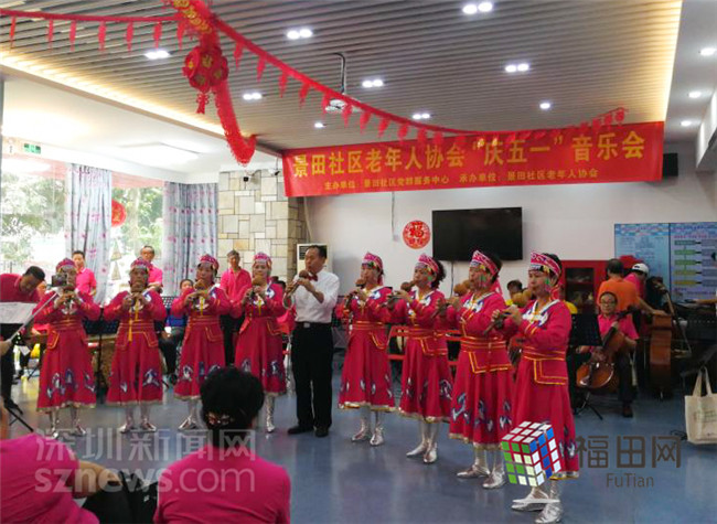 景田社区老年人协会音乐会的50多名成员欢聚一堂,以美妙的音乐会形式迎接五一。