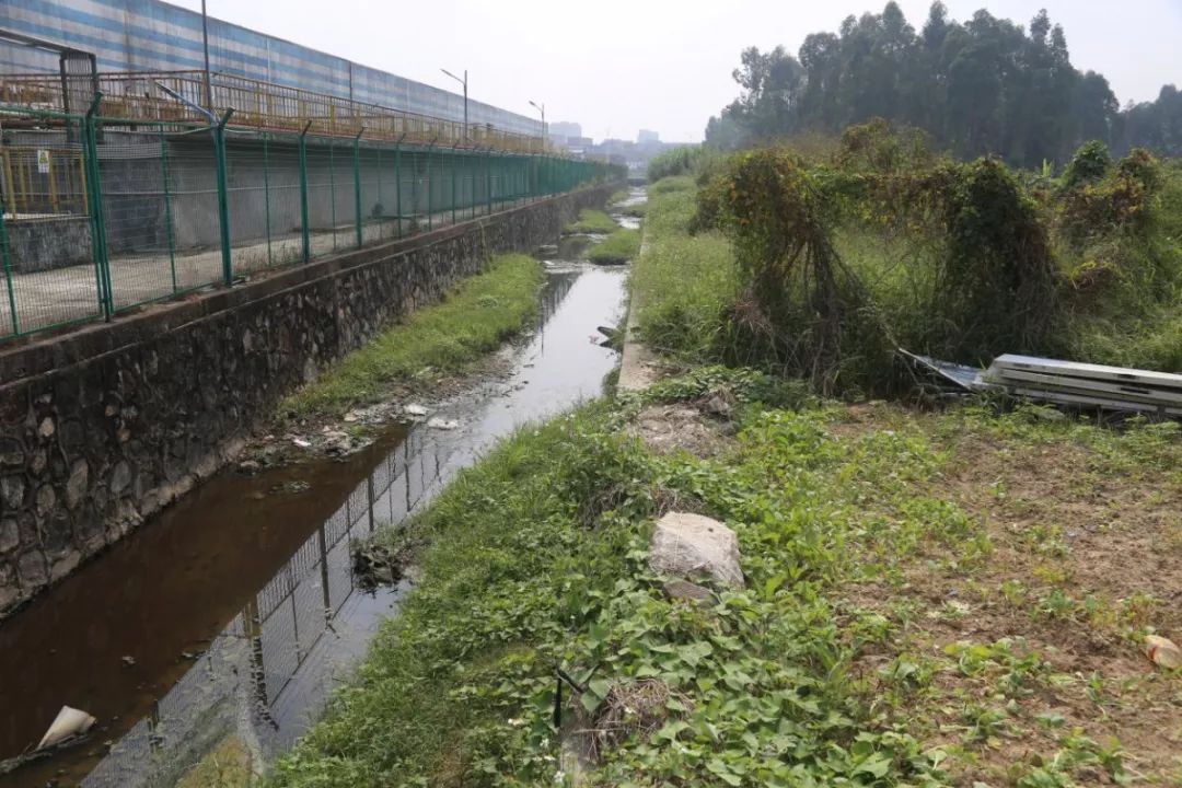 由于塘下涌上游受到 东莞市长安镇红花坑垃圾填埋场的影响 污水量大 中下游则穿过 东莞和深圳两市的生活区和工业区 污水直排入河的现象严重 根据深圳市人居环境委员会 2015年开展的 深圳市非建成区黑臭水体调查 塘下涌河道黑臭等级为重度黑臭 黑臭段总长度为3.5km 塘下涌治理后 ▼