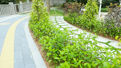 如今漫步在塘下涌河道两畔 眼前可见令人身心愉悦的绿化景观