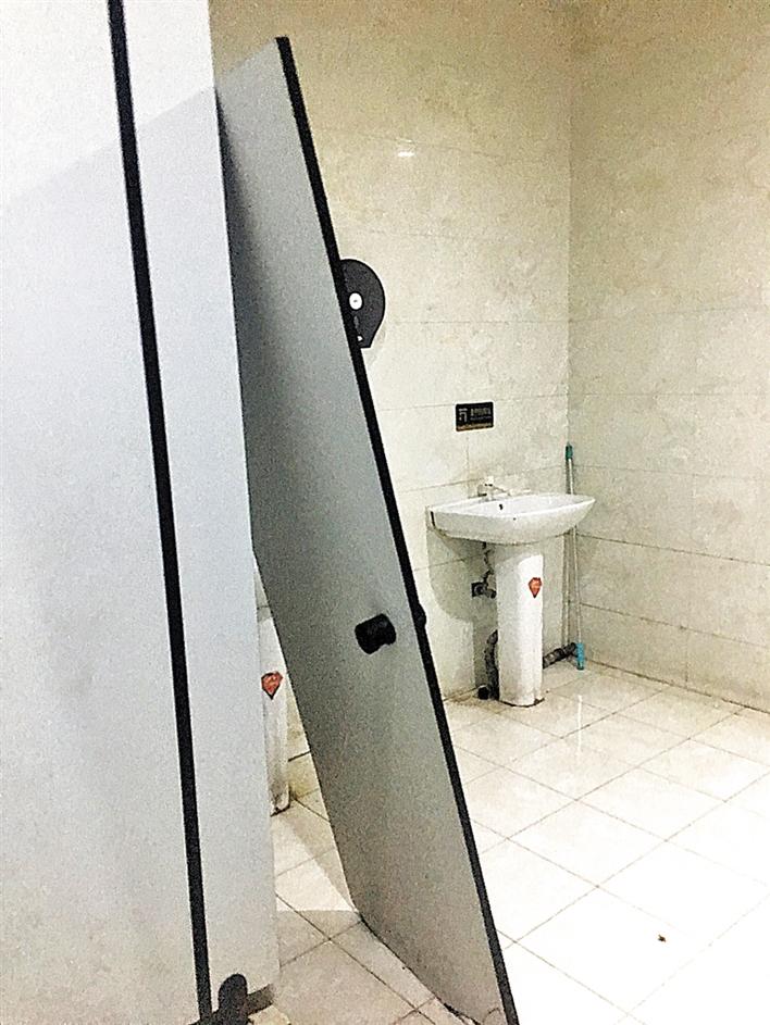 仁山智水小区楼下公厕有专人打扫卫生,地面干净,但有厕所门已坏,被移至一旁,另有一间厕所无法使用,门被细铁丝缠住,不能打开。此外,有的厕所已经堵塞,没有及时疏通清理,卫生状况仍需加强和提升。