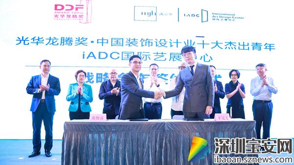 国际艺展中心与光华龙腾奖•中国装饰设计业十大杰出青年进行战略合作签约。 据悉,5月9日起国际艺展中心将陆续举办六大系列活动,包括:湾区设计月暨设计师高峰论坛、眼镜设计研讨会及商务交流会、钟表研讨会及商务交流会、漫谈设计——感知建筑的美德、“另一种光”iADC新媒体艺术展、红木的无限可能设计大展等。