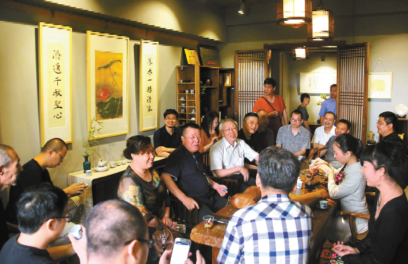 “现代人越来越注重生活美学,这次的展览很贴近生活,我亲眼见证这个书画展的准备全过程,这些书画家们既是内容撰写者,又是书画创作者,还是设计师和装潢师。他们亲自裁剪悬挂,布置调整,茶和书画文化结合起来,刚好与善济堂茶禅会馆作为大众服务的生活美学体验馆的理念不谋而合。”善济堂茶禅会馆女主人成洁曼告诉记者。
