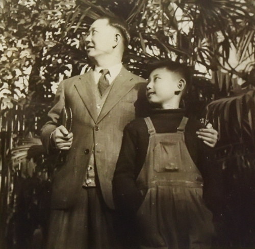 资料图:梅兰芳先生与儿时的梅葆玖。梅玮供图。