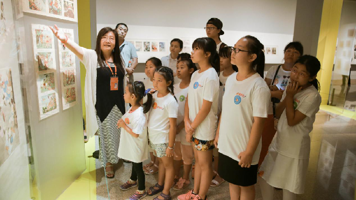 开营当天,孩子们还参观了中国美术馆《故事绘》连环画展,中国美术馆志愿者教员为环卫子女介绍了中国美术馆的历史以及文明观展礼仪。