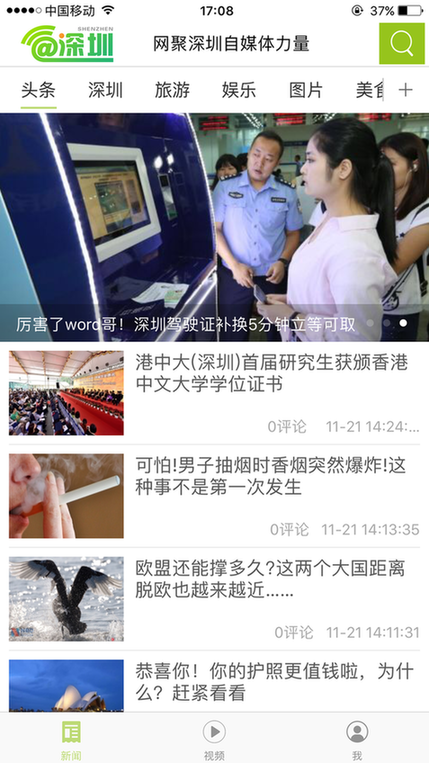 “@深圳”通过虚拟一个城市级的内容平台,将不同平台和载体的内容连在一起,兼容性强。技术新,“@深圳”本质是手机网站,可嵌入在微信公众号底部菜单栏中(也可嵌入APP客户端中),采用了最新H5编码技术,可左划右划更换频道,也可上划下划翻看内容,还可以增减和订制频道,操作与APP无明显差别,不用下载安装,直接将网页存在桌面即可。选择多,“@深圳”包括手机网站和APP客户端两个形态,嵌入微信菜单键的为手机网站,此外还有单独安卓版和苹果版APP可供用户下载。