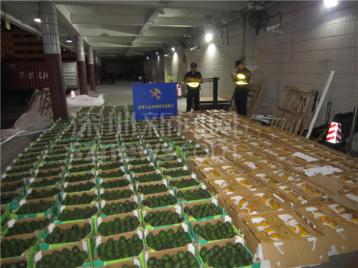 共查获释迦果300箱共0.75吨,牛油果537箱共2吨