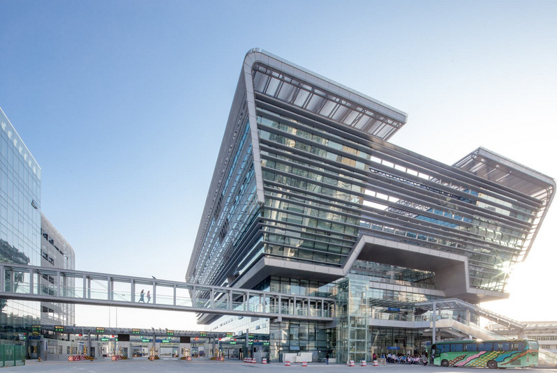 文锦渡口岸旅检区域主要由新建联检综合楼,出入境小(客)车查验通道及停车楼等建筑组成。其中,联检综合楼建筑高度约30.4米,地上六层,局部地下一层,建筑面积20322平方米(含地下室)。停车楼建筑面积约22050平方米,设停车位500多个。