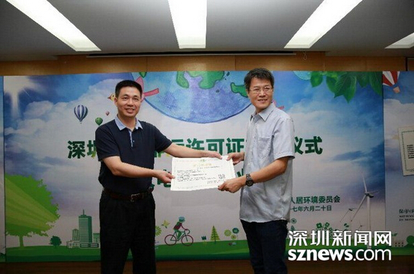 深圳新闻网讯(记者 范萌)深圳市人居环境委员会于6月20日上午在妈湾电力有限公司举行“新排污许可证首发仪式”,妈湾电力等8家火电企业以及澎宇纸品(深圳)有限公司申请获得国家版排污许可证。按照环保部《关于开展火电、造纸行业和京津冀试点城市高架源排污许可证管理工作的通知》要求,6月30日前应完成火电、造纸行业企业排污许可证申请与核发工作,深圳市现已提前完成上述两个行业的排污许可证核发工作。