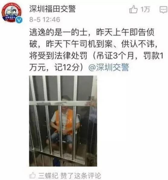 近日,有网友向深圳交警举报了一宗涉嫌肇事逃逸的交通事故。接报后,深圳市交警局迅速锁定肇事车辆,并依法传唤涉事司机。目前,交警已对该司机处以吊证3个月、罚款1万、记12分的处罚。深圳交警的办事效率获得网友纷纷点赞:这才是特区速度!