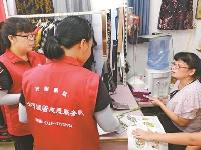 公明城管志愿服务队开展“门前三包”宣传活动。