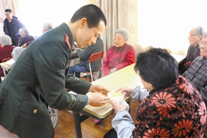 2月11日,宝安福利中心内一片欢腾,孤寡老人和残疾孩童与武警广东省边防机动支队官兵一起度过了一个欢乐喜庆的元宵佳节。(记者李伟文 摄)