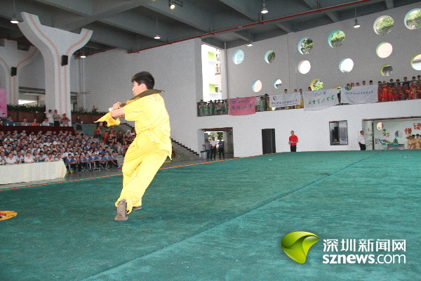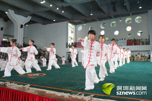 深圳新闻网讯(记者 王志明 通讯员赵小平)长拳如虹,刀光棍影。5月26日,南山区2017年中小学传统文化节武术展示活动在南山外国语学校(集团)大冲学校精彩上演,来自南山区西丽二中、南头城小学等16所学校幼儿园的师生“以武会友”,进行了太极剑、南拳和刀术等48个项目角逐,并向大家展示了所学到的“中国功夫”。南山区副区长练聪观看了武术展示。