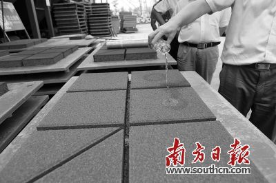 用河底淤泥烧制的透水砖,渗水能力极强,实现了废物再利用。