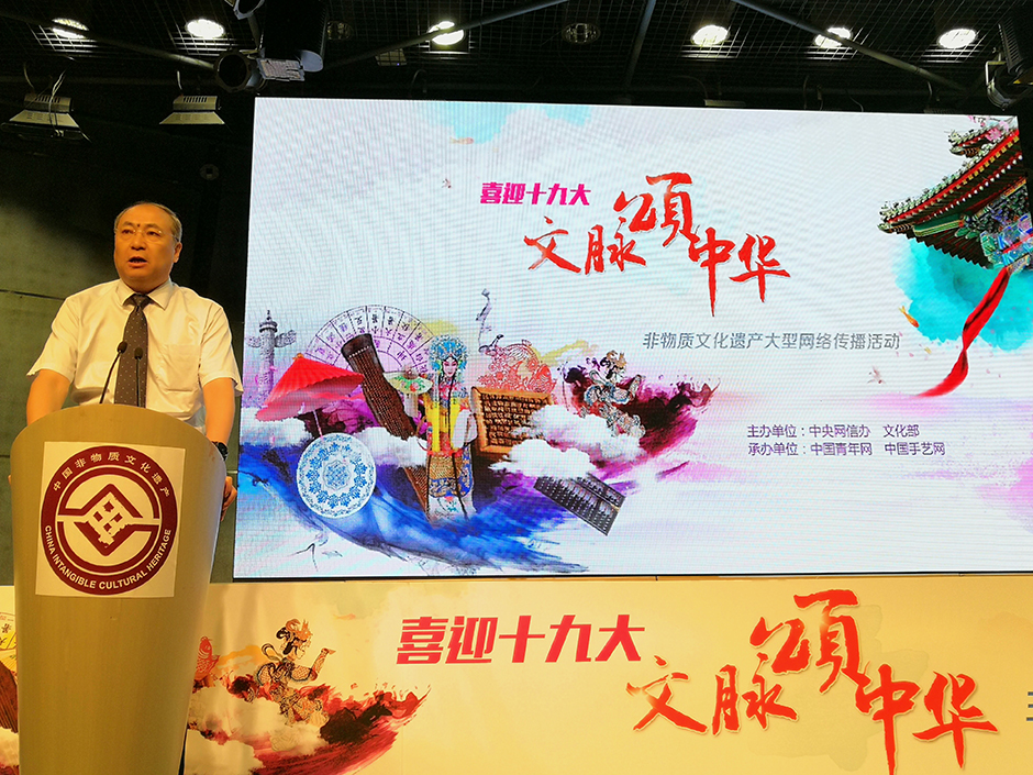 中国网9月15日讯(记者 李汀)9月15日上午,由中央网信办、文化部主办的“喜迎十九大文脉颂中华”非物质文化遗产大型网络传播活动启动仪式在首都博物馆举行。中央网信办、文化部相关领导以及十几家中央网络媒体共同参与了此次启动仪式。