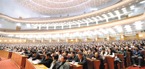 党的十八届六中全会明确习近平同志为党中央的核心、全党的核心,反映了全党的共同意志,反映了全党全军全国各族人民的共同心愿。图为2016年11月,学习贯彻党的十八届六中全会精神宣讲团首场报告会在北京举行。