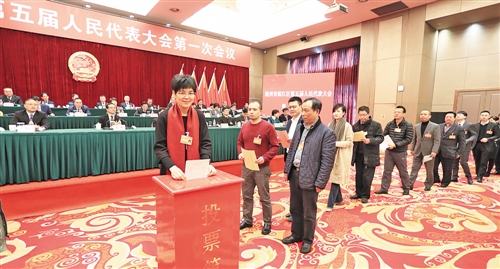 图为2017年2月,浙江省杭州市滨江区人大表决民生实事项目。
