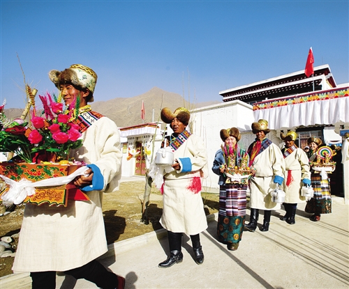“十三五”期间,全国计划有1000万建档立卡贫困人口通过易地扶贫搬迁实现脱贫。图为西藏自治区拉萨市曲水县达嘎乡三有村易地扶贫安置点,贫困群众在新居喜迎藏历新年。