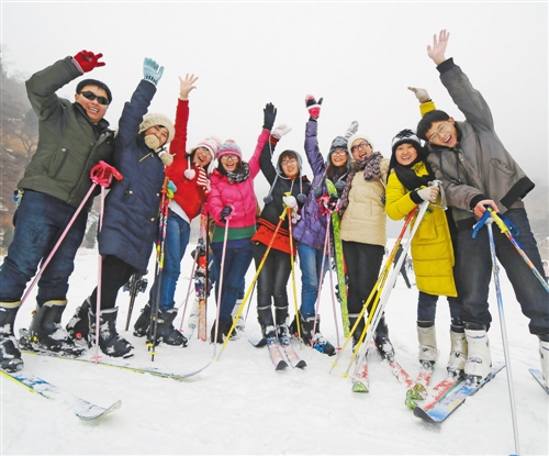 图为游客在山西运城万荣县孤峰山国际滑雪场滑雪。