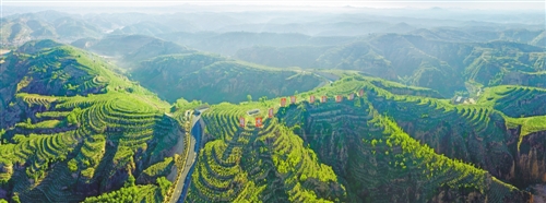 提高贫困人口在国家实施重大生态工程中的参与度和收益水平。图为山西省临县白文镇李家湾村的生态造林工程。