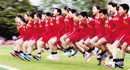2012年至2016年,教育领域综合改革全面展开,教育投入不断增长,教育机会明显增加,教育质量显著提高。图为上海某初中学生参加集体体育活动。