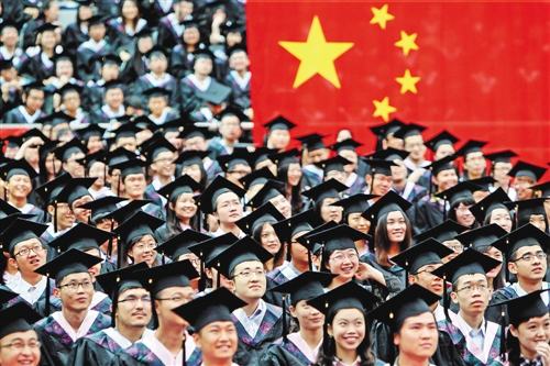 5年中有3400多万名大学毕业生走向社会,成为各行各业发展的生力军。图为复旦大学2013届毕业生毕业典礼。
