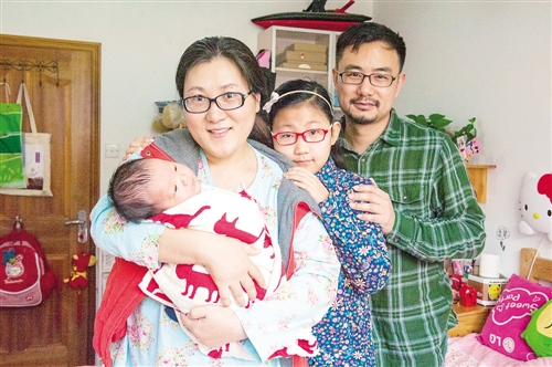 党的十八届五中全会实施全面两孩政策。图为山东青岛李栋、张海霞一家,他们在2016年1月迎来了第二个宝宝。