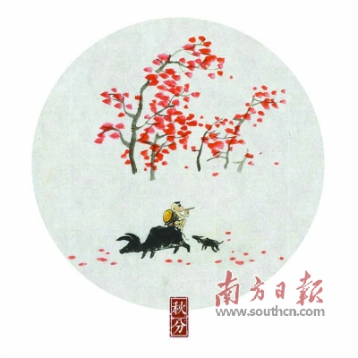 至于这组水墨画在网上“火”起来的原因,林帝浣归结为“好玩”。他打破传统范式,在表现季节变换时,尽量避免常规表现手法。比如“大暑”,只画了两根枝条与一只正在向上攀爬的蝉;“寒露”则是一位隐士闲坐一叶扁舟随风而去。