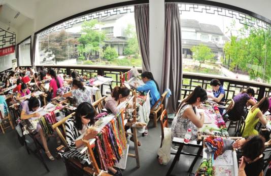 镇湖苏绣从以往的农民副业到如今的主业,成为广大农民创业、就业的平台,农民的收入得到了持续增加,家庭收入75%以上来自刺绣。