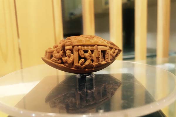 “舟首尾长约八分有奇,高可二黍许。中轩敞者为舱,箬篷覆之。旁开小窗,左右各四,共八扇。启窗而观,雕栏相望焉。”这是《核舟记》内一段对小舟的描述。采访间隙,周建明拿出了自己的作品《核舟记》,和当时的记载有异曲同工之处。同时他透露,近日将带着该展品启程赴美参加文化交流活动。“带了原料、展品、半成品前往美国博物馆及学校现场互动,手把手教他们核雕技术。”周建明坦言,这一方面可以让外国人加深对中国核雕文化的了解,同时也通过亲自动手制作增加了感性认识,体验了创作过程。