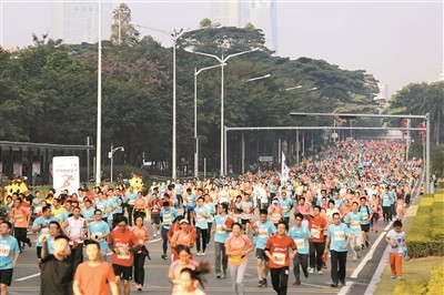 大型体育赛事及运动项目频频登陆深圳。图为2016深圳国际马拉松比赛现场。