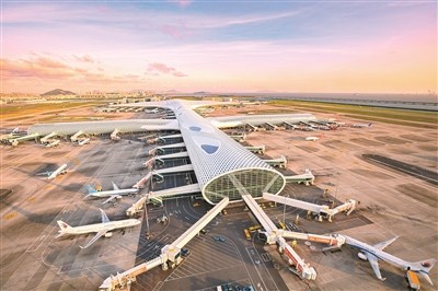 2013年11月28日早上6:00,深圳机场新航站区(新航站楼、新货运区)正式启用,所有旅客将通过新航站楼抵离深圳。图为夕阳下的机场,美丽而壮观。