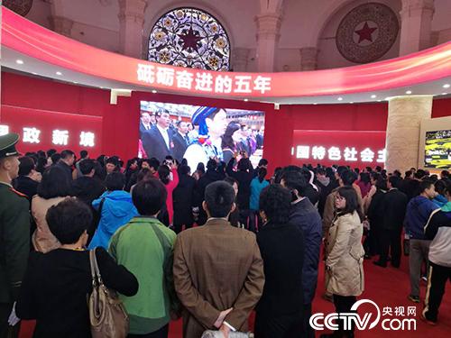 央视网消息今早9点展览馆开馆后,“砥砺奋进的五年”大型成就展现场即洋溢在热烈庆祝党的十九大胜利召开的喜庆氛围中,场馆入口处的巨幅标语已换成“热烈庆祝党的十九大胜利召开”。“通州百姓”参观团冒雨率先前来观展。成就展“序篇”展区中央的大屏幕,实时直播着“十九大”开幕式。开幕式直播引得前来参观展览的市民们驻足观看,并不时交流留影。据介绍,工作人员早上8点左右就打开展览馆大门,开始精心调试直播“十九大”开幕式。