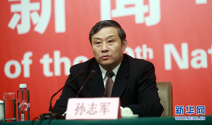 中宣部副部长孙志军向与会记者介绍情况。新华网 郝广鹏 摄
