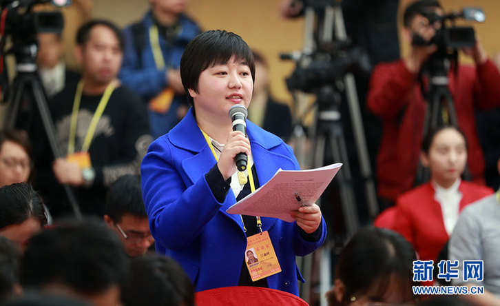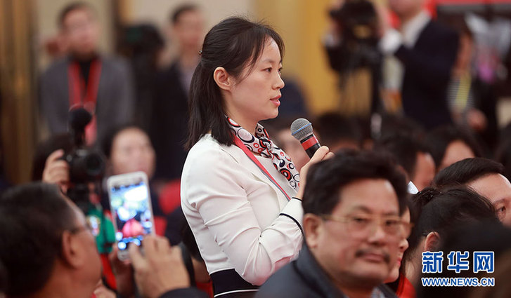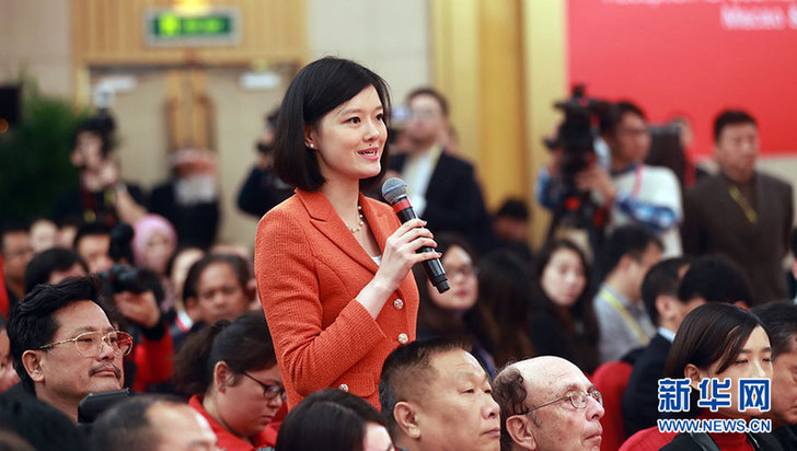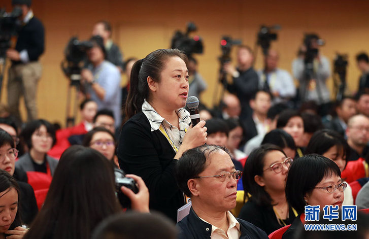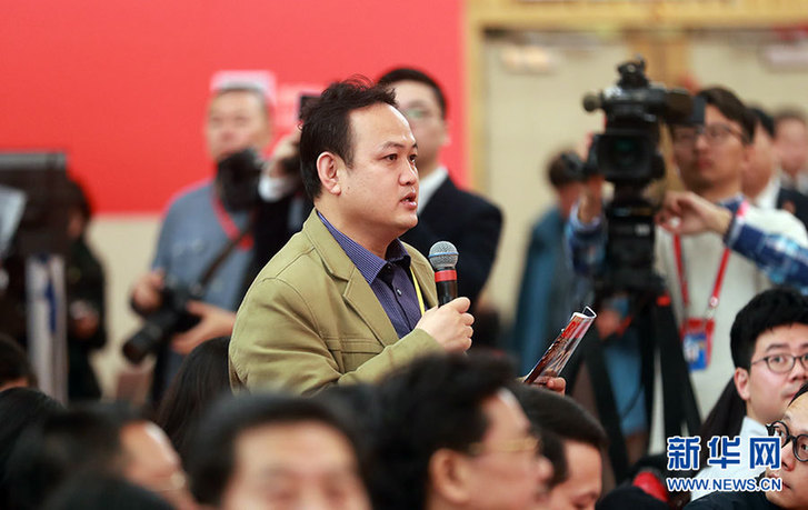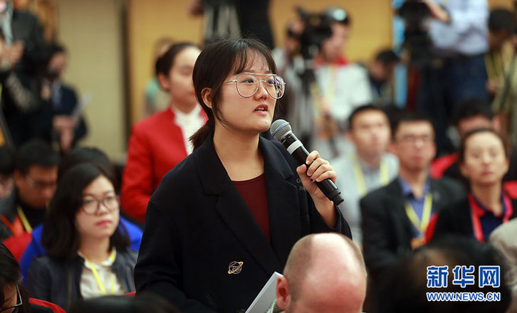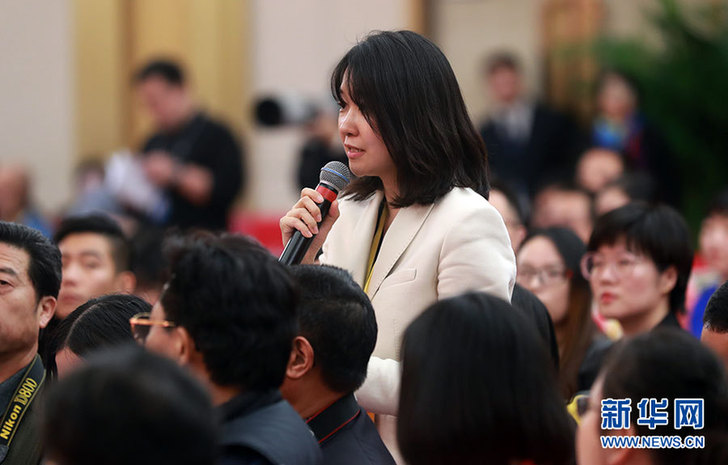 中央人民广播电台记者提问。新华网 郝广鹏 摄