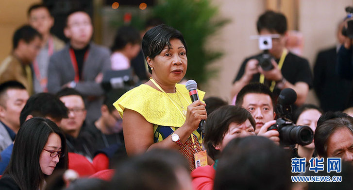 喀麦隆国家电台的记者记者提问。新华网 郝广鹏 摄