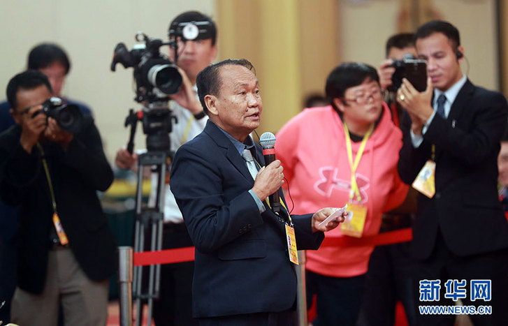 缅甸民主浪潮杂志主编记者提问。新华网 翟子赫 摄