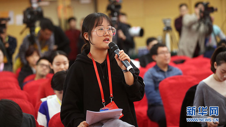 中国青年报记者提问。新华网 郝广鹏摄